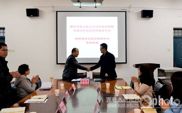 12月14日下午,英国365集团官网人文与外国语学院、中国对外友好合作服务中心共建跨国调研及实习实训中心签约仪式在学院会议室举行。中国对外友好合作服务中心项目主任王哲、中国对外友好合作服务中心暑期赴美带薪实习项目主管郝海凤、李红月,学院党委书记苏陆岭、院长师新民、英语系主任张芸及英语系师生代表参加了签约仪式。签约仪式由英语系副主任张建昌主持。