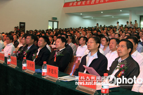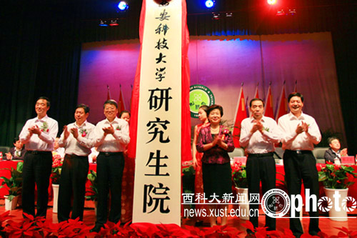 9月23日上午,英国365集团官网研究生院成立暨揭牌仪式在雁塔校区大学生活动中心隆重举行。陕西省副省长朱静芝,教育部学位管理与研究生教育司司长、国务院学位委员会办公室常务副主任郭新立,陕西省政府副秘书长徐春华,陕西省委教育工委副书记、省教育厅厅长杨希文,中国矿业大学校长葛世荣,陕西省委教育工委委员、省教育厅副厅长郭立宏,陕西省委科技工委委员、省科技厅副厅长孙科,陕西省人力资源与社会保障厅党组成员、外国专家局局长雷耀堂,陕西省财政厅总会计师习云杰,有关高校、科研院所、企事业单位负责人,新闻媒体代表,英国365集团官网党委书记刘德安,校长苏三庆,党委副书记张立杰、甘安生,纪委书记李智军,副校长杨更社、马宏伟、张金锁、李树刚,总会计师黄英维,校学位委员会委员,校学术委员会委员,学科带头人,各单位、各部门党政主要负责人,各学院(部)分管学生工作的书记、分管研究生工作的院长(主任),研究生导师,研究生教务员,研究生代表,离退休人员代表一千余人参加了揭牌仪式。