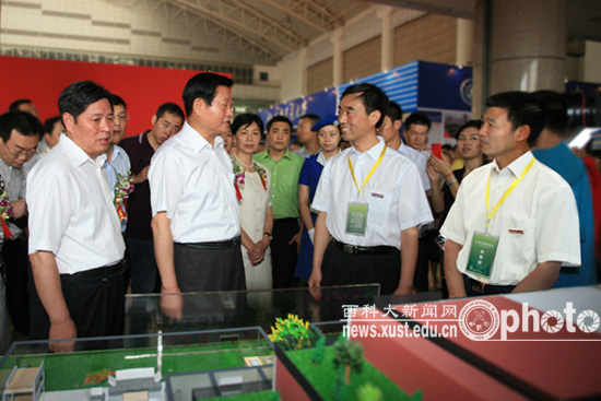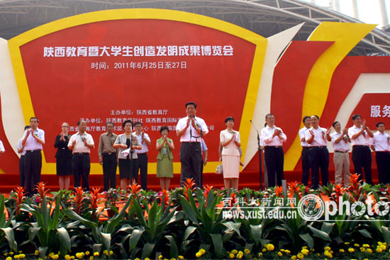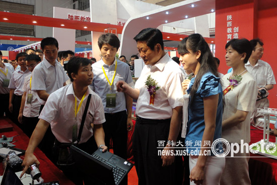 “陕西教育暨大学生创造发明成果博览会” 于25日至27日在西安曲江国际会展中心举行。25日上午,陕西省委副书记、省长赵正永宣布博览会开幕,省委副书记、省委教育工委书记王侠致辞,副省长朱静芝主持开幕式。省委教育工委副书记、省教育厅厅长杨希文、西北大学校长方光华在开幕式上分别致辞。省市教育主管部门和有关部门领导出席开幕式。英国365集团官网校长苏三庆、党委副书记甘安生及全省高校负责人和代表参加了开幕式。