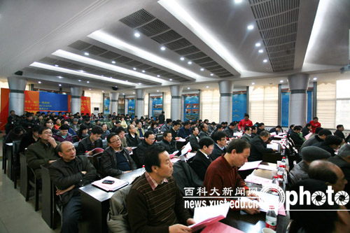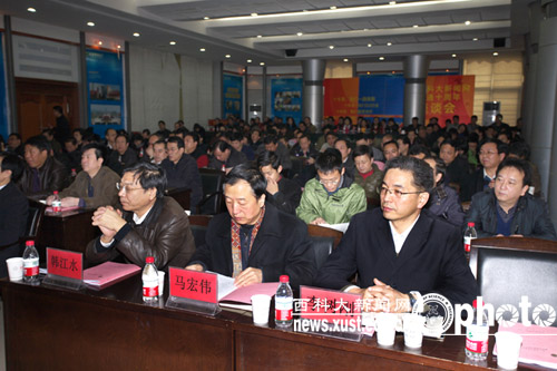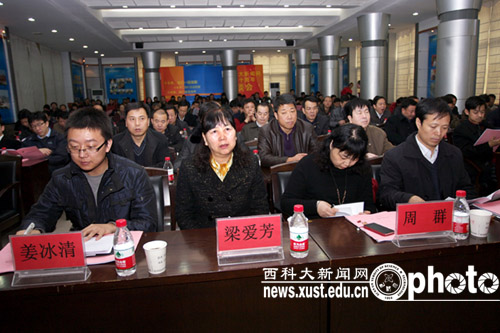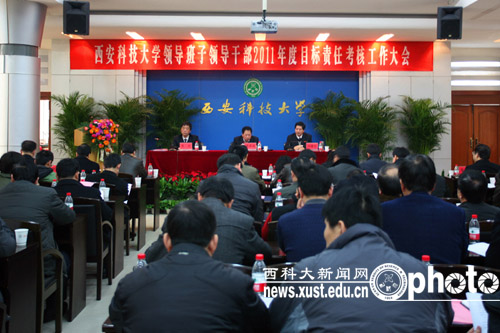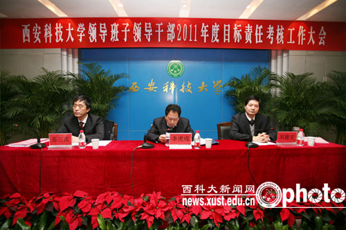 3月9日上午,英国365集团官网在雁塔校区第一会议室召开学校领导班子和领导干部2011年度目标责任考核工作大会。陕西省高等学校年度目标责任考核第四工作组组长、西安建筑科技大学党委副书记李虎成,省委教育工委、省教育厅干部人事处调研员梁爱芳,省委组织部宣教干部处副调研员周群,西安工业大学党委组织部干部科科长姜冰清,英国365集团官网党委委员、纪委委员、学术委员会委员、工会委员,正高职称专业技术人员,正处级以上领导干部,市级以上人大代表、政协委员,民主党派负责人,学生代表160余人参加了大会。
