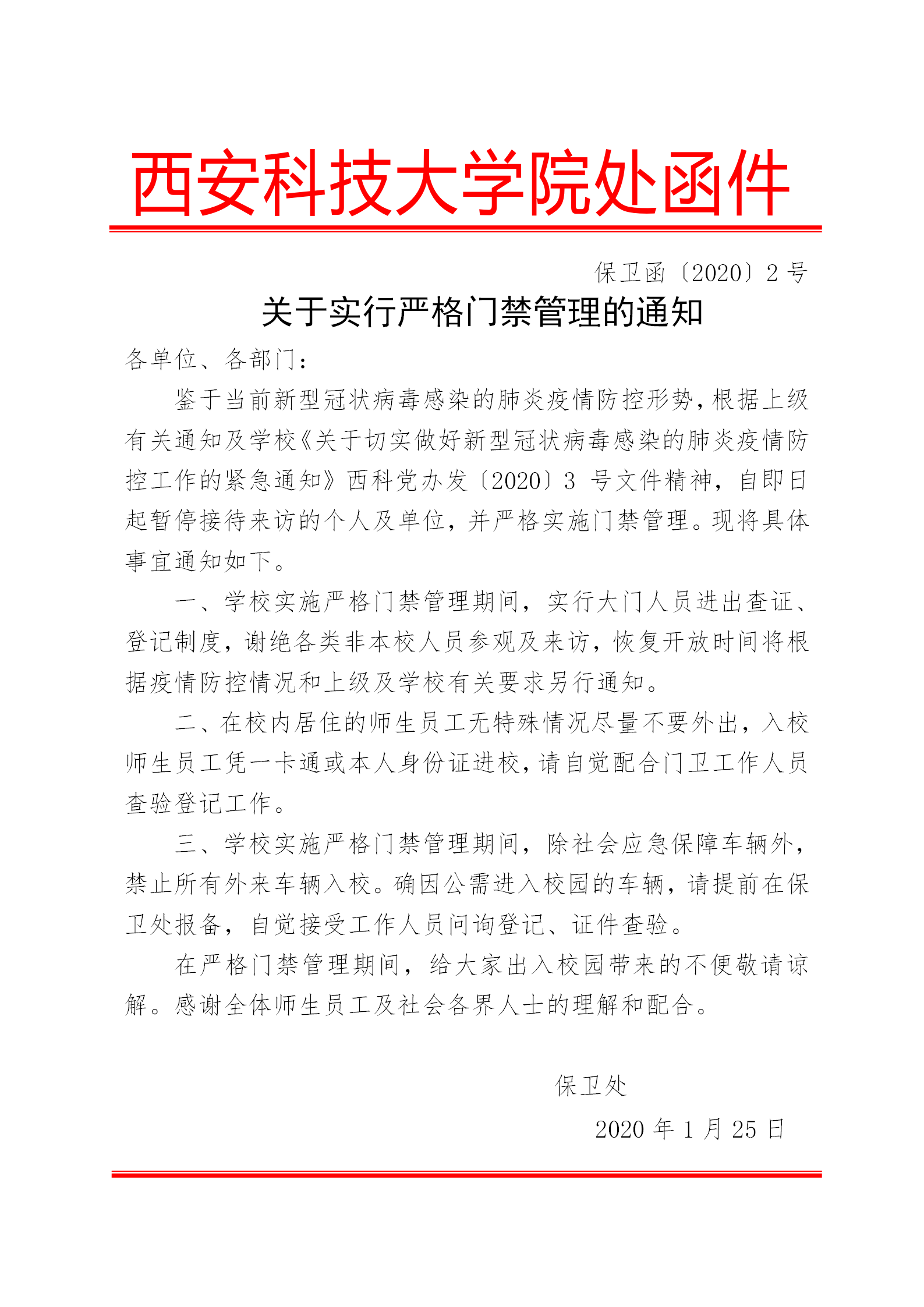 关于实行严格门禁管理的通知(保卫函〔2020〕2号).doc