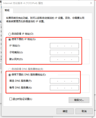 2) 配置方式:在电脑(直连入户网线)或路由器中配置正确IP地址、子网掩码、网关、DNS等信息。